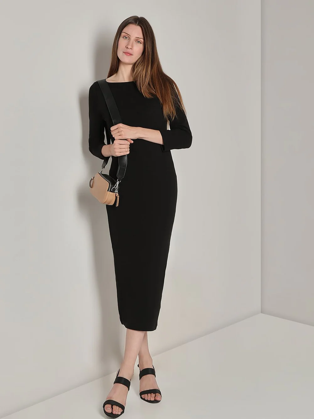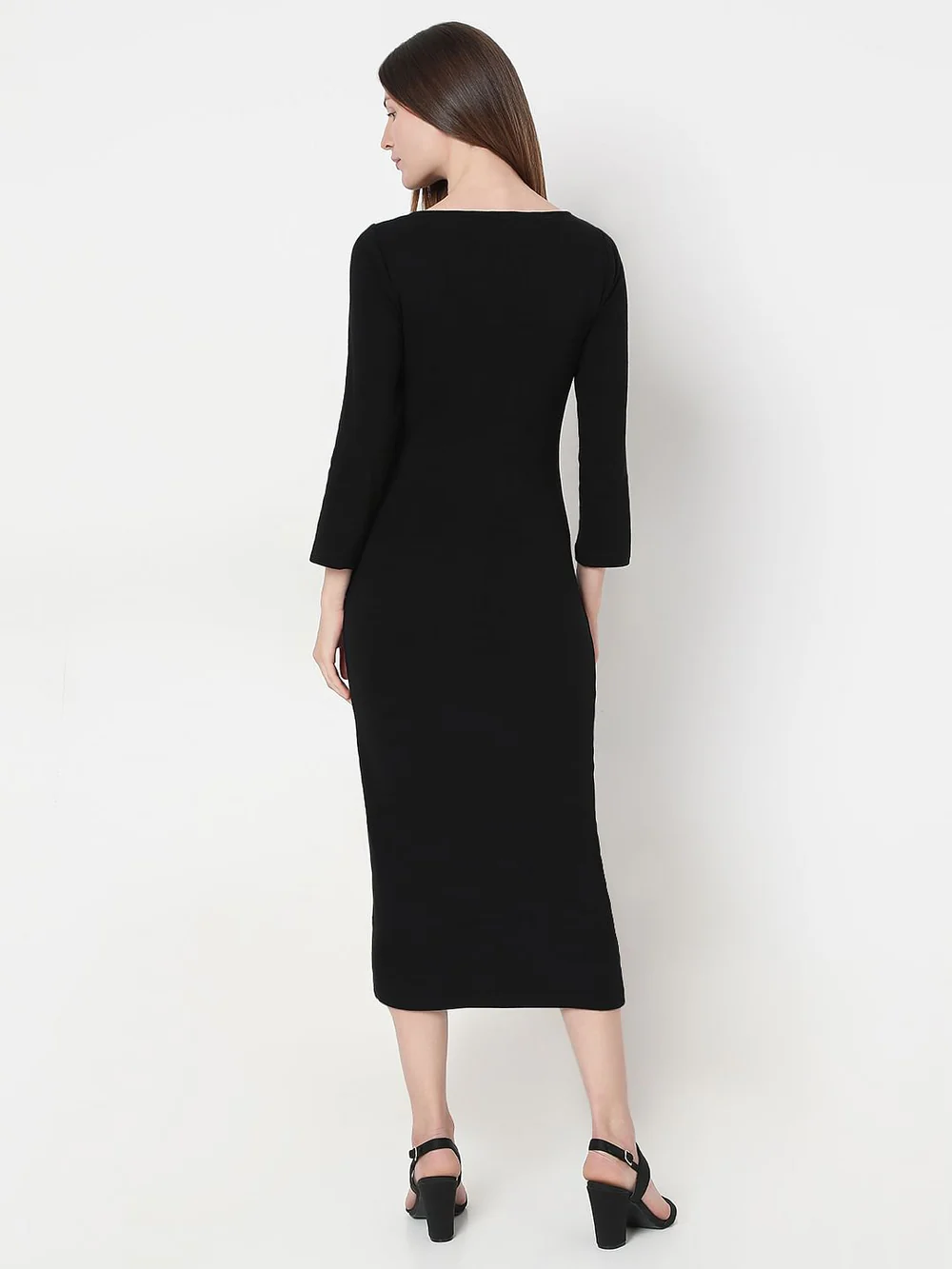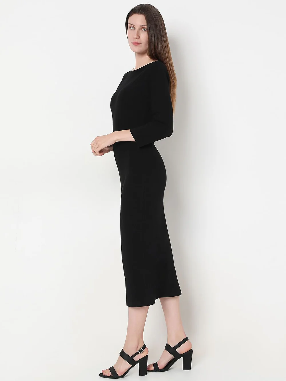 BLACK KNITTED MIDI DRESS