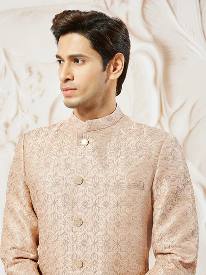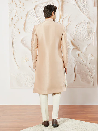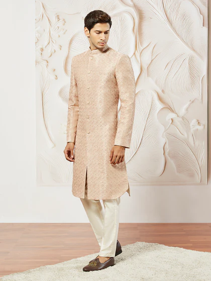 Men’s Peach Silk Blend Sherwani And Pyjama Set SKU: VASMSW610PHnPANT536CR_36