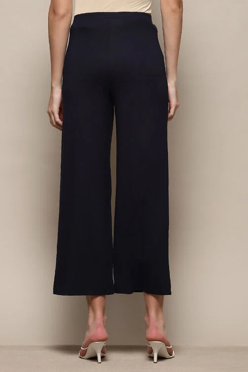 Navy Blue Cotton Viscose Solid Palazzo